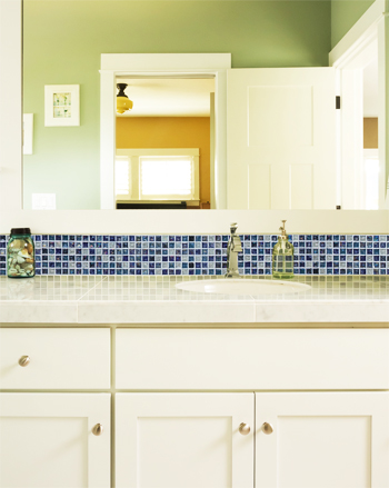 > ガラスモザイクの洗面スペース施工例